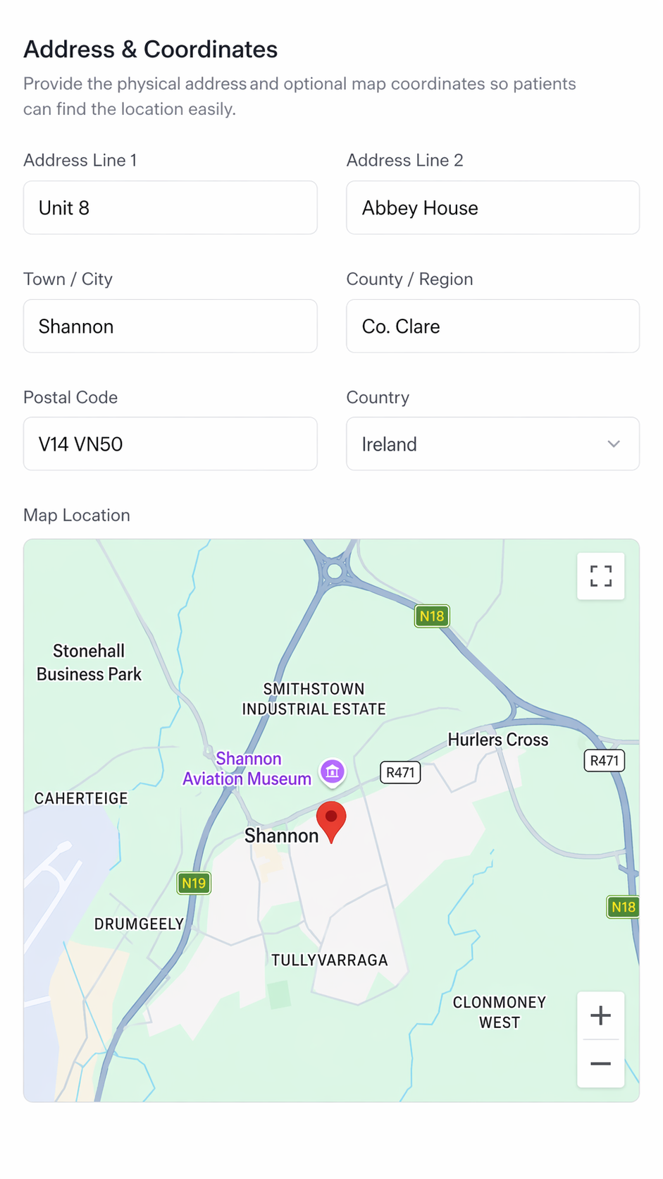 Keep address and directions content attached to the location record so patients know exactly where to arrive.
