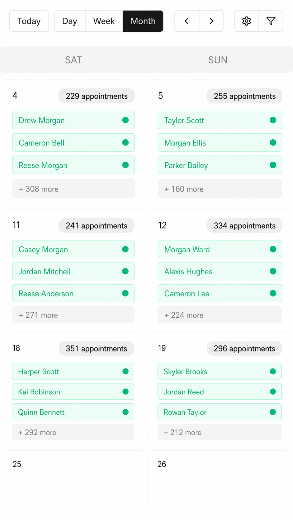 Scheduled appointments